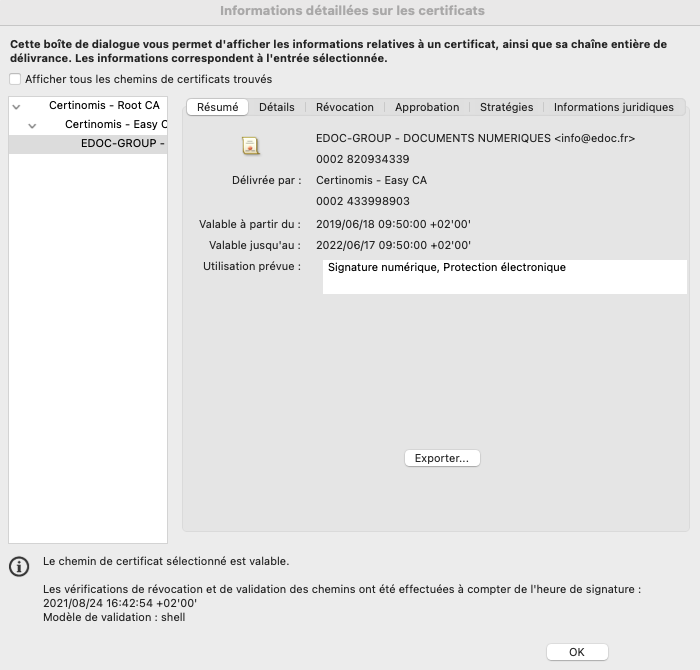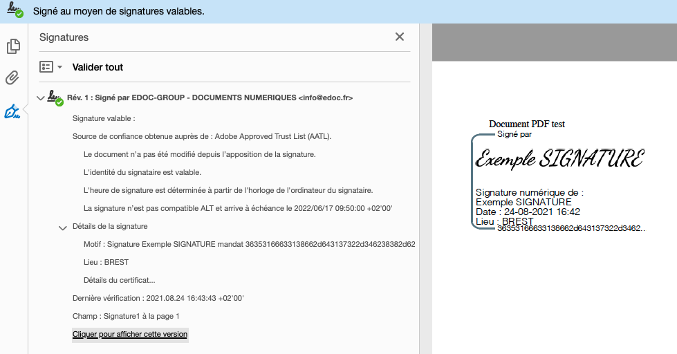 Dans le détail de la signature, se retrouvent les informations saisies par le signataire confirmant ainsi son identité.