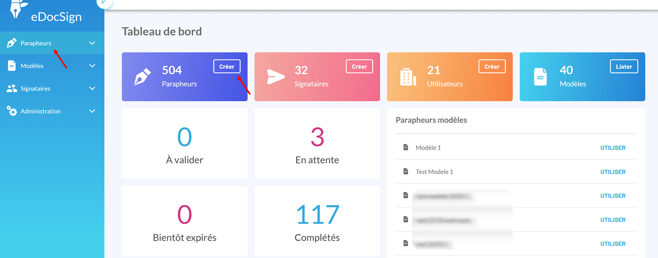 Dans le menu latéral gauche, cliquez sur Parapheurs puis Créer un parapheur