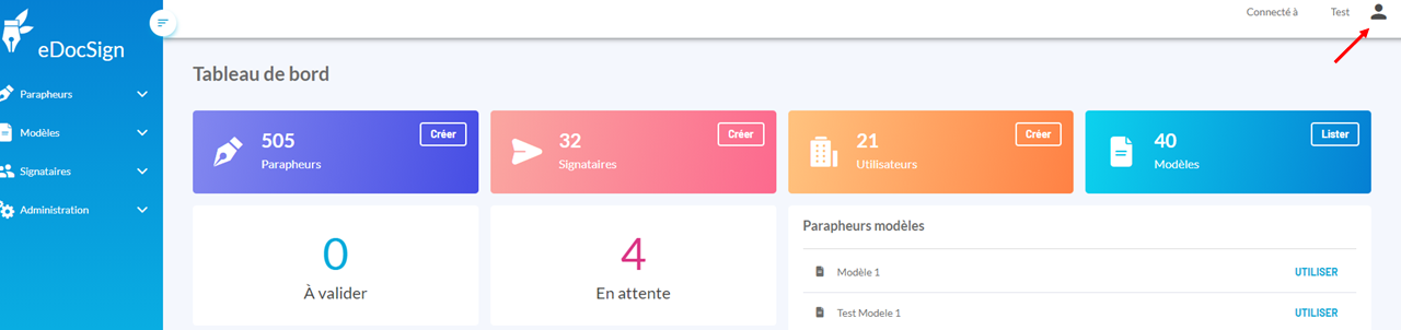 Cliquez sur la silhouette positionné en haut à droite de la page ensuite sur Mon profil.