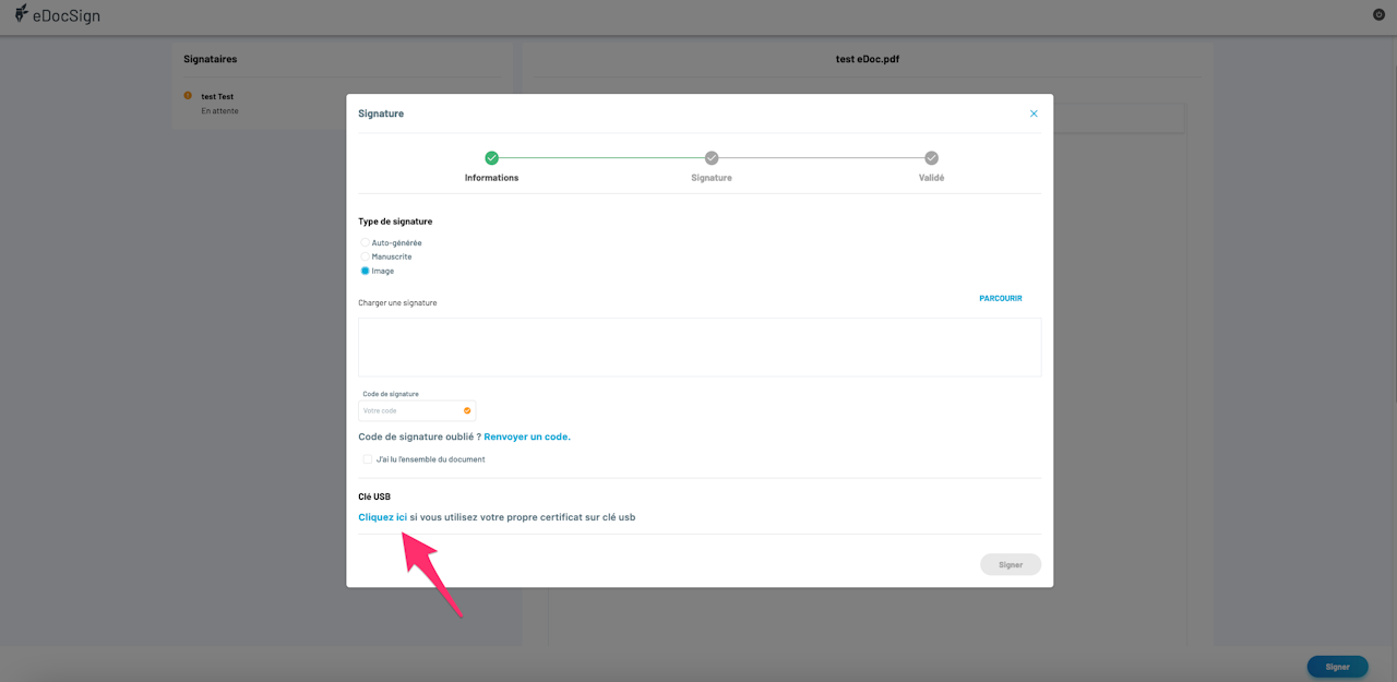 Vous détenez un certificat de signature et vous souhaitez déclencher une signature depuis votre clé USB sur eDocSign?